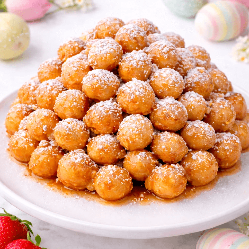 Crisp, golden dough bites tossed in warm honey and finished with powdered sugar. Nostalgic Italian sweet perfect for sharing.