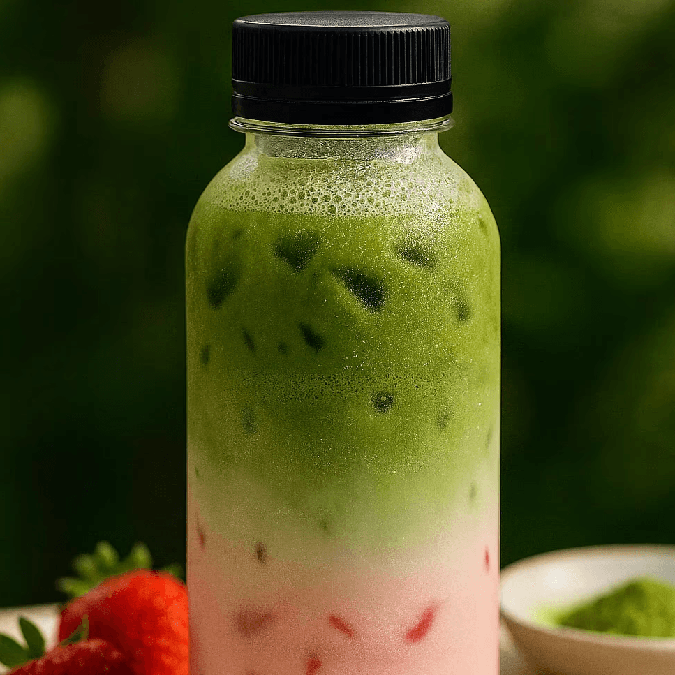 Layered strawberry milk and ceremonial-grade matcha, poured over ice for a refreshing, one-of-a-kind sip.